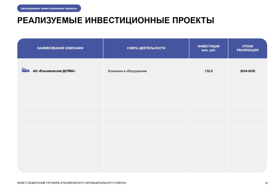 - Стратегические документы, содержащие информацию о реализации инвестиционных проектов на территории Ельниковского муниципального района